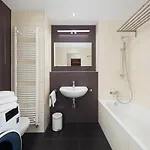 Medvedin 408 Appartement bestaat uit een terras en een zitruimte met een bureau, en modern comfort zoals een TV en een flatscreen TV met satellietzenders. De accommodatie bestaat uit 1 slaapkamer. 1 badkamer heeft een apart toilet en een badkuip, plus een droger en handdoeken.